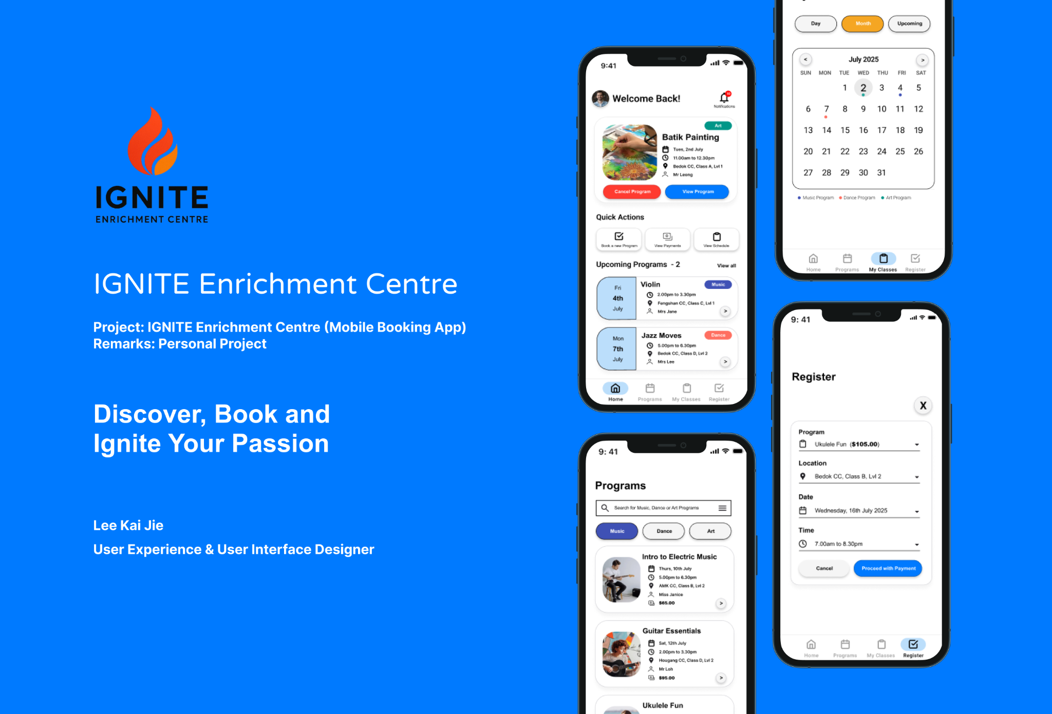 12 November 2025 IGNITE Enrichment Centre Mobile App Mobile Booking Application for Young Adults to book Programs (Music, Dance and Art) offered by IGNITE Enrichment Centre